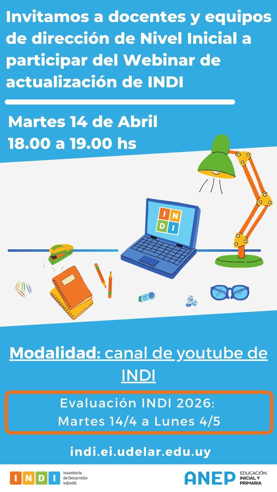 📢 Invitamos a participar en el Webinar de actualización dirigido a docentes y equipos de dirección, tanto con como sin experiencia en la administración del INDI.
